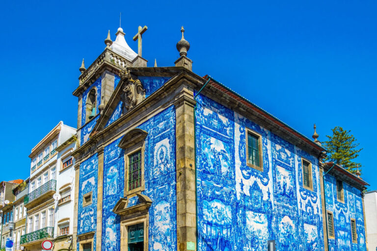 Considerado um dos elementos mais típicos das construções de Portugal, os azulejos são quase uma marca registrada dessa estética tão elegante e pode ser vista na Capela das Almas na cidade de Porto em Portugal.