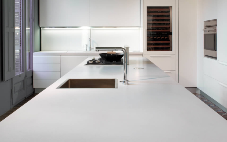 Cozinha em quartzo branco